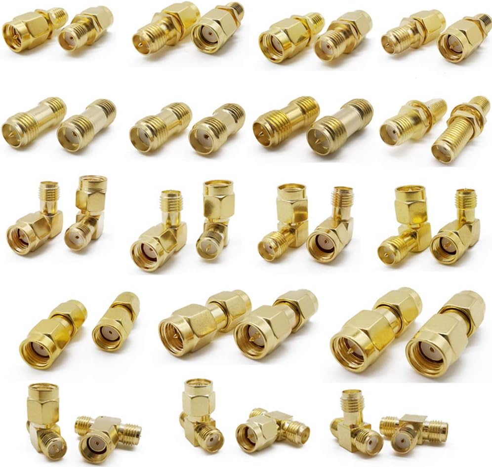 Amazon.com: ALLiSHOP SMA Connectors kit 18 Type SMA RP-SMA Adapter Plug and Jack Straight and 90° SMA Connector Goldplated Brass RF Coax Connectivity Set for FPV Antennas Radio Baofeng Yaesu IP Camera