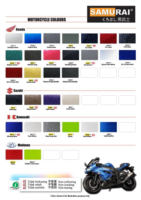 Colour Chart Samurai Paint Malaysia